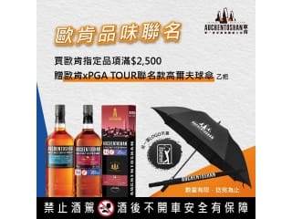 ▎歐肯x PGA Tour 品味聯名歐肯威士忌系列 指定品項滿$2,500 即可獲贈歐肯x PGA聯名款高爾夫球傘乙把