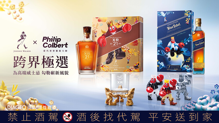 「Johnnie Walker X Philip Colbert跨界極選系列」以Philip Colbert赫赫有名的創作「龍蝦先生」為主角,推出兩款全新聯名禮盒。