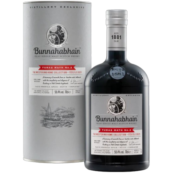 Turas Math No.2 是一款酒廠限定款威士忌,先在波本桶中熟成,接著轉至稀有的 Palo Cortado 雪莉桶中完成熟成。風味豐富,帶有蜂蜜榛果、橙皮果醬與溫暖香料氣息,完美捕捉冒險的精神與歸鄉的喜悅。