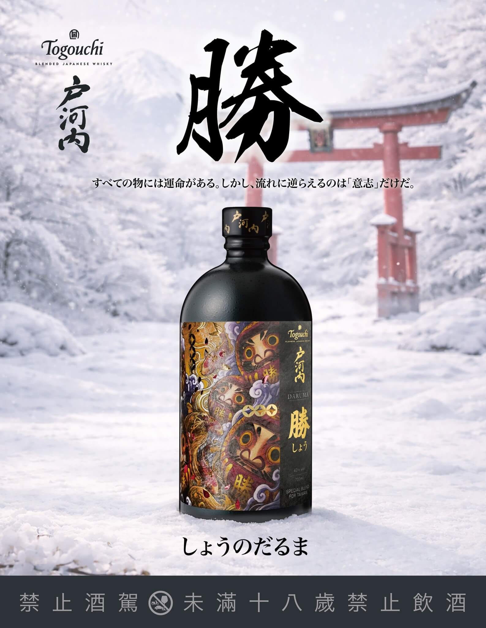 在日本文化裡,達摩象徵「不倒、不退」,而「勝」更像是對自己的超越——不是凌駕他人,而是穩住內心後的前進。 以此意象承載在酒款視覺上,讓這瓶不只是一款威士忌,也是一份可被珍藏的祝願:先勝其心。