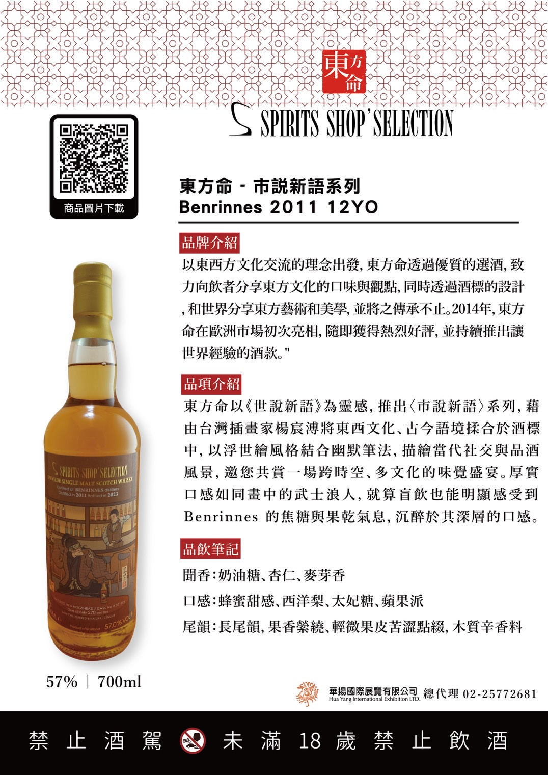 東方命 市說新語系列 Benrinnes 2011 12年 原酒