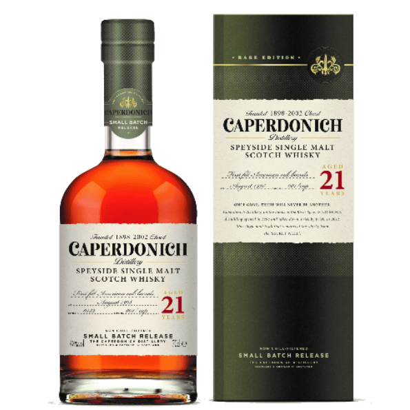 Caperdonich威士忌酒廠始於1898年,中間經過幾次易手以及有一段長時間停廠沒有生產,可稱為廠途坎坷,最後於2011年拆卸,現已銷聲匿迹,但其蒸餾的威士忌卻相當高質素。Caperdonich泥媒味系列打破Speyside單一麥芽威士忌的傳統釀造法,充滿煙熏風味和豐富複雜的風格。香港備有3款不同年份的威士忌可供選擇,包括 18 年、21 年及 25 年。